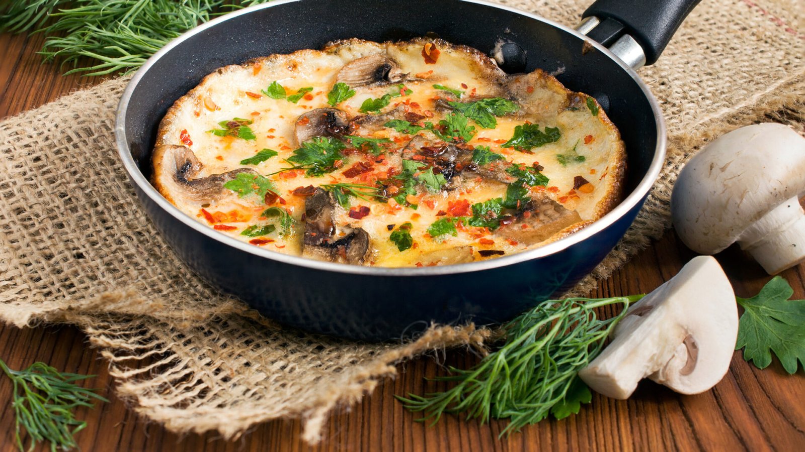 - Coupez l’omelette en deux et servez-la accompagnée de pain grillé.