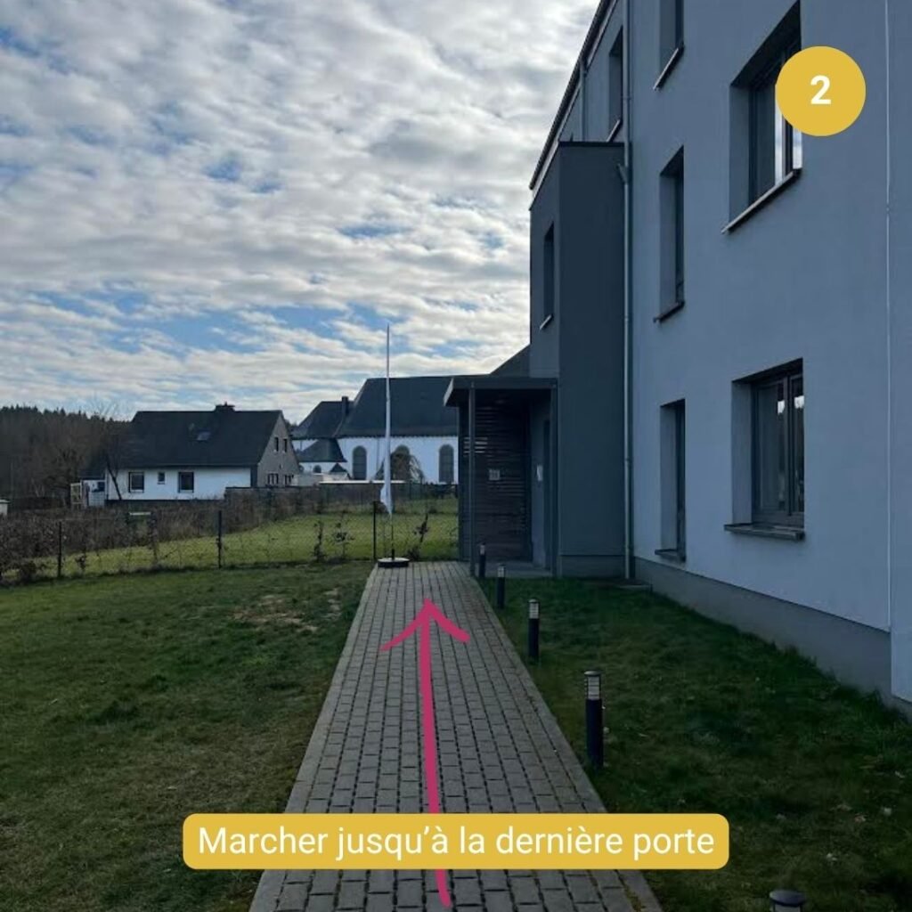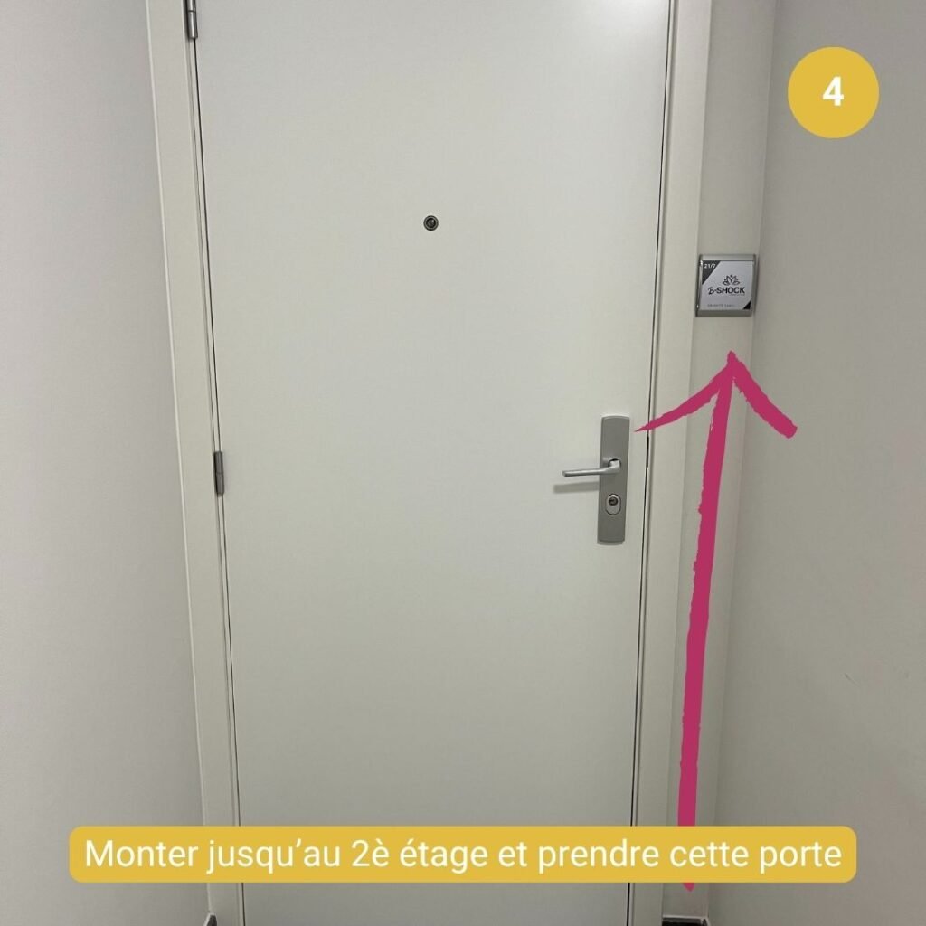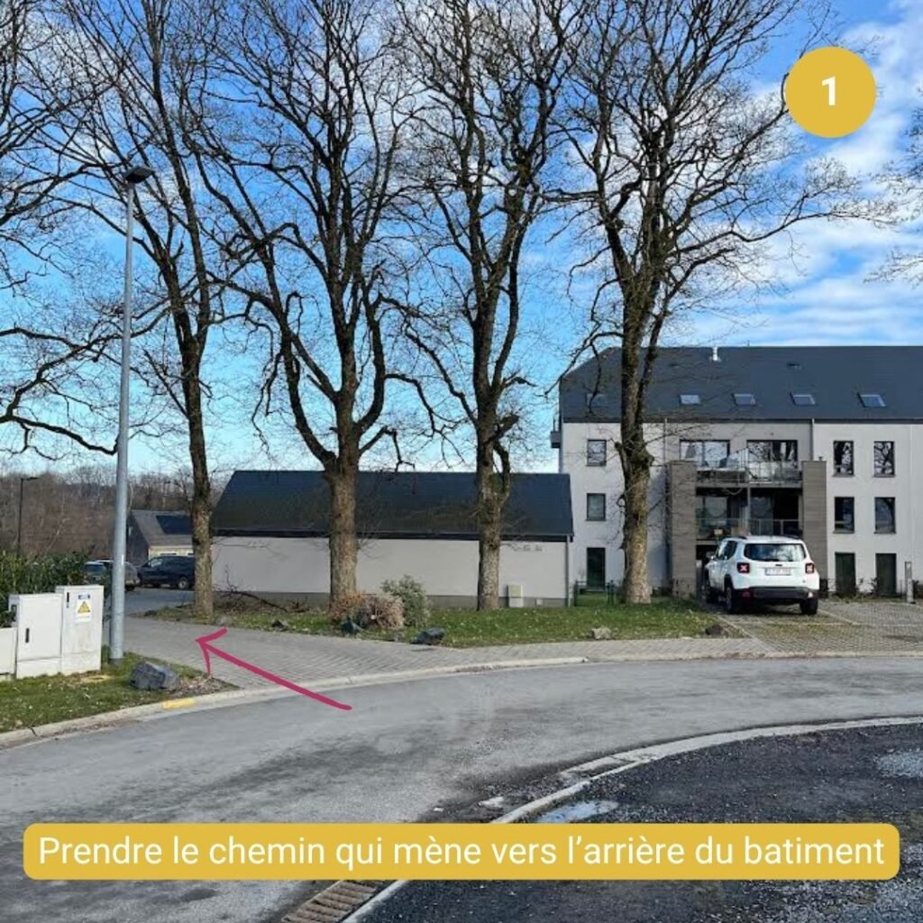 Une fois stationné, déplacez-vous à pied jusque devant le bâtiment de l’adresse indiquée et suivre les consignes ci-dessous pour accéder à l’entrée.